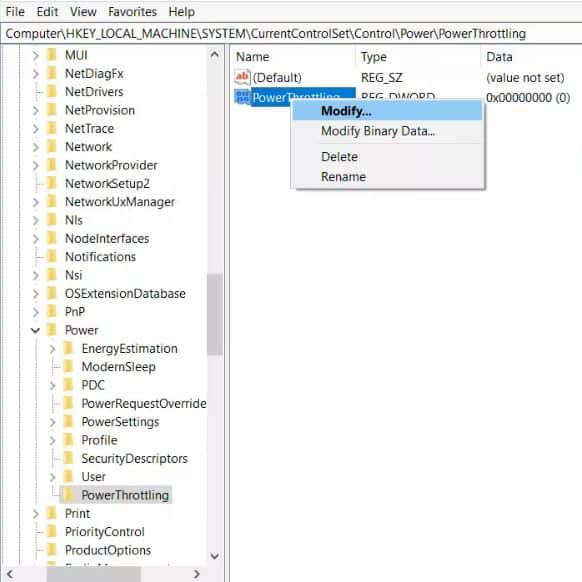 Don’t worry if you want to enable power throttling later. Just follow the first five steps then in step#6, click on the PowerThrottling key and then delete it.