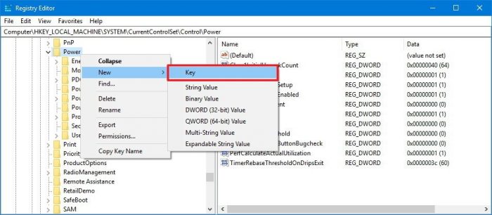 HKEY_LOCAL_MACHINE\SYSTEM\CurrentControlSet\Control\Power